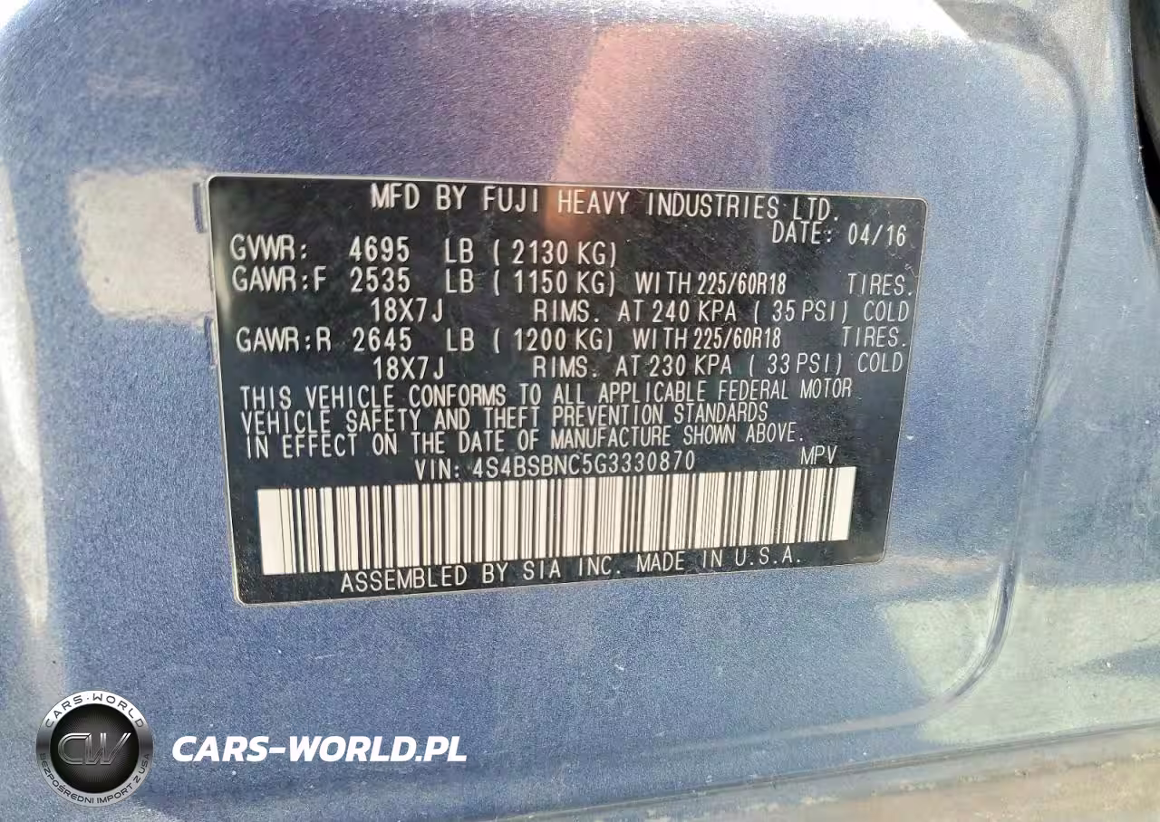 Copart Nr: C-78404305 VIN: 4S4BSBNC5G3330870 Port: Houston, TX