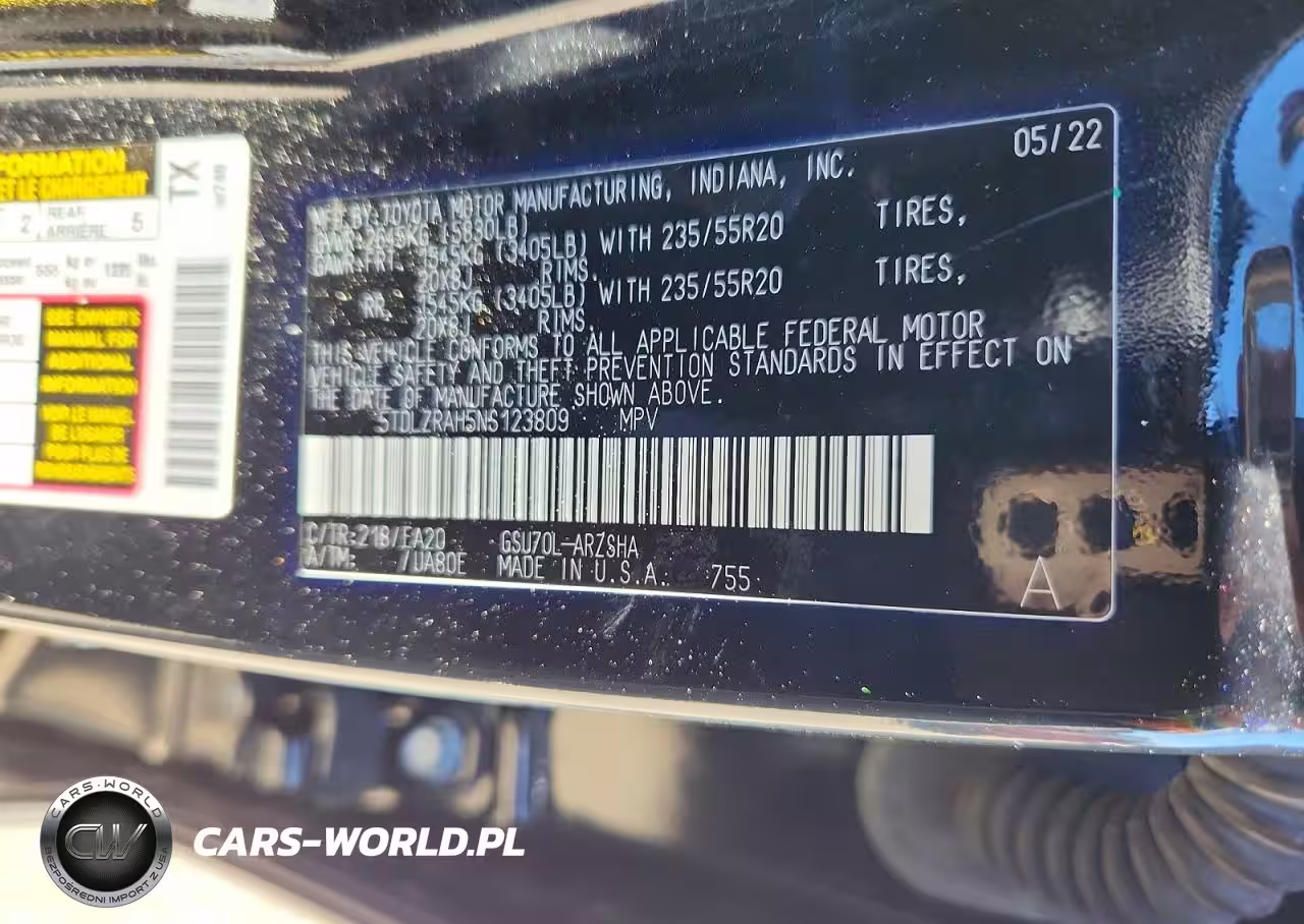 Copart Nr: C-78411835 VIN: 5TDLZRAH5NS123809 Port: Savannah, GA