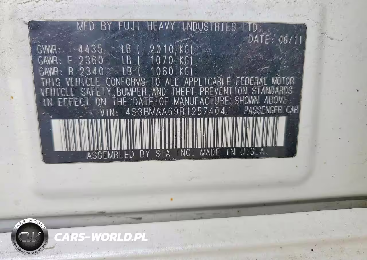 Copart Nr: C-78467075 VIN: 4S3BMAA69B1257404 Port: Indianapolis, IN