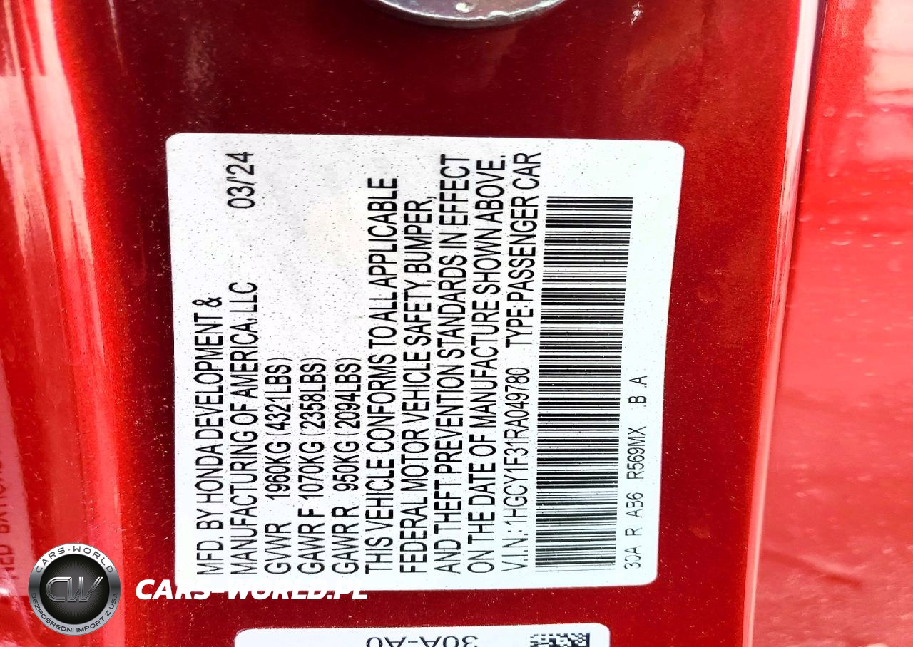 Copart Nr: C-78467245 VIN: 1HGCY1F31RA049780 Port: Los Angeles, CA