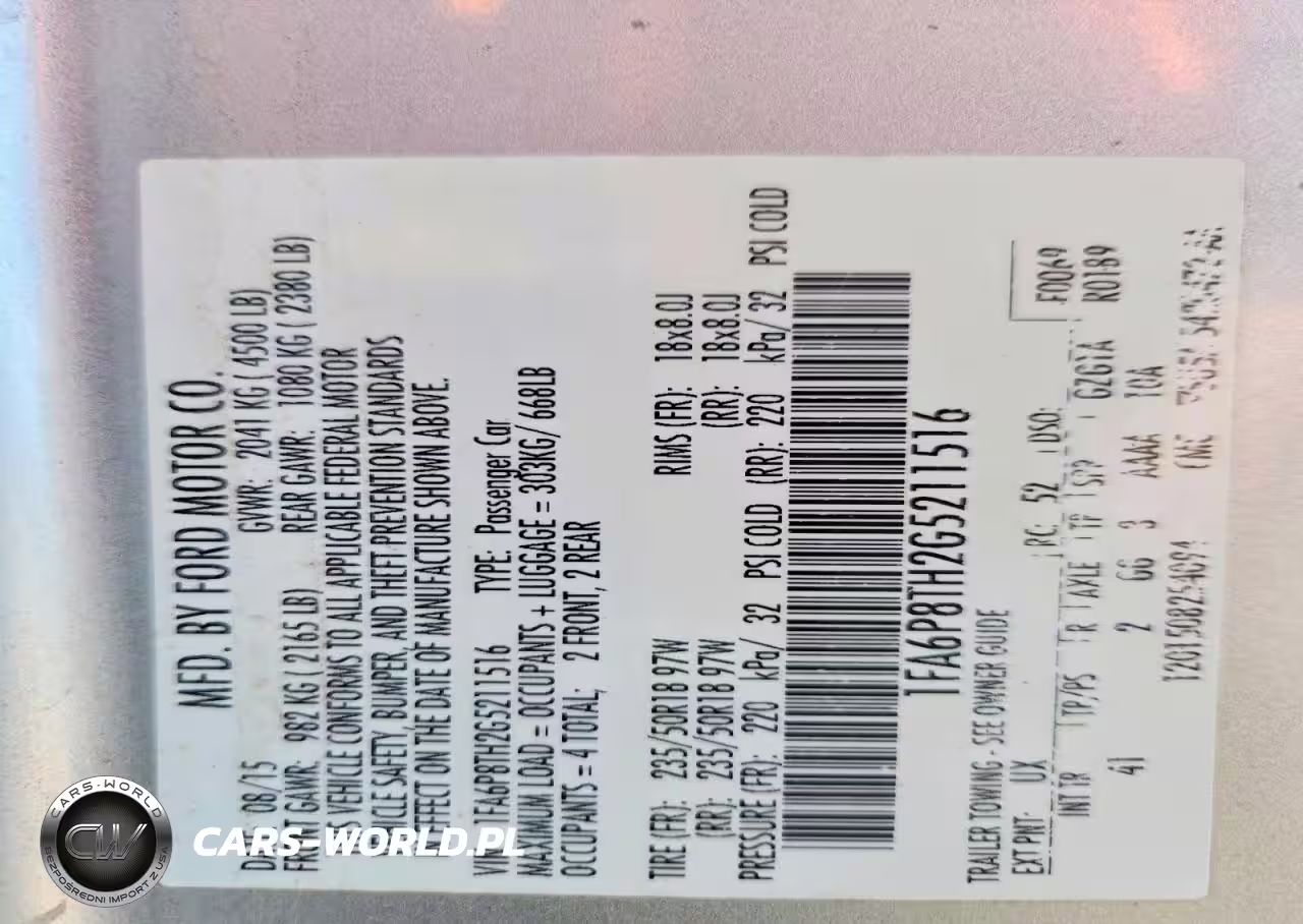 Copart Nr: C-78488505 VIN: 1FA6P8TH2G5211516 Port: Savannah, GA