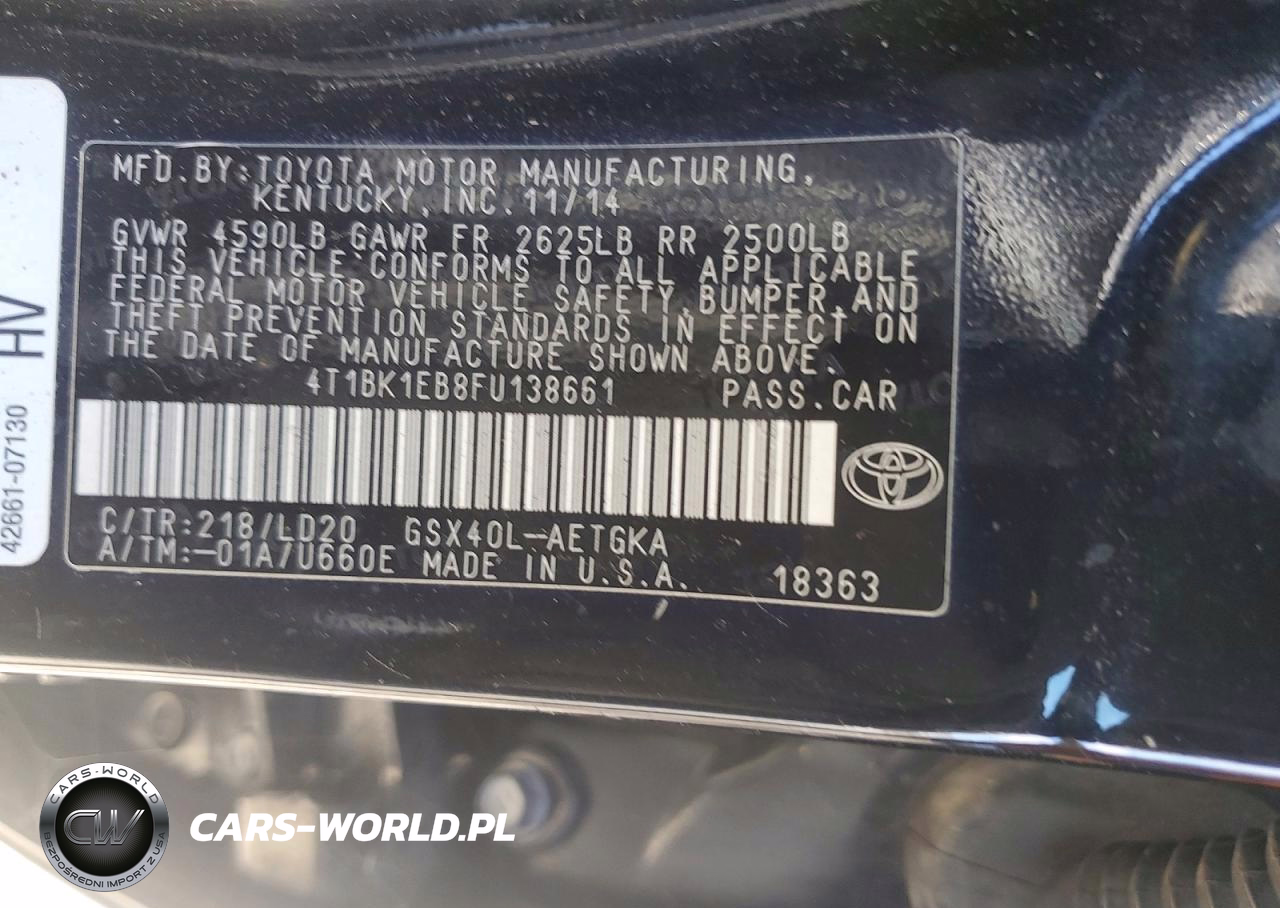 Copart Nr: C-78489635 VIN: 4T1BK1EB8FU138661 Port: Los Angeles, CA