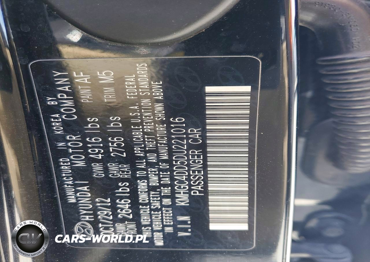 Copart Nr: C-78501625 VIN: KMHGC4DD5DU221016 Port: Savannah, GA