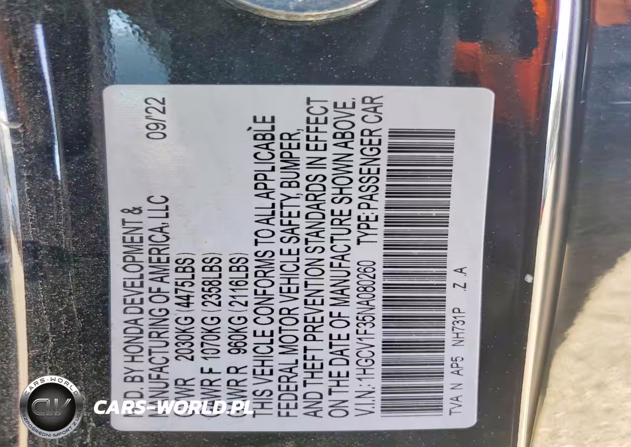 Copart Nr: C-78503425 VIN: 1HGCV1F35NA080260 Port: Los Angeles, CA