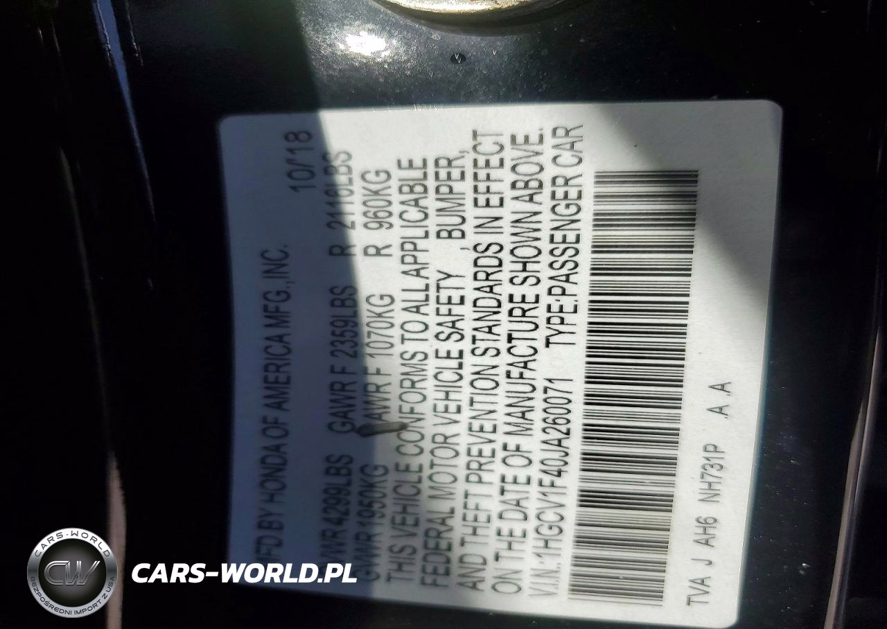 Copart Nr: C-78518015 VIN: 1HGCV1F40JA260071 Port: Elizabeth, NJ