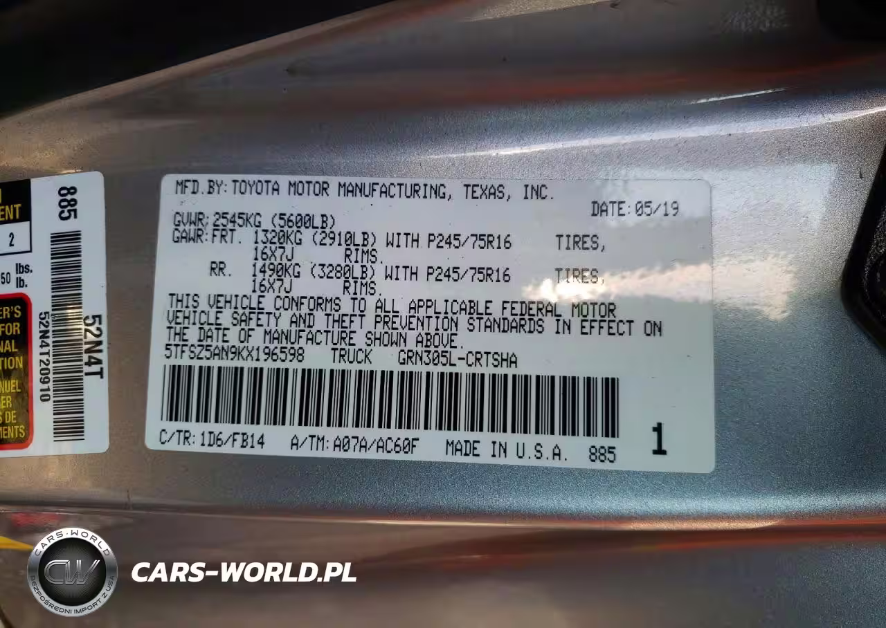 5TFSZ5AN9KX196598