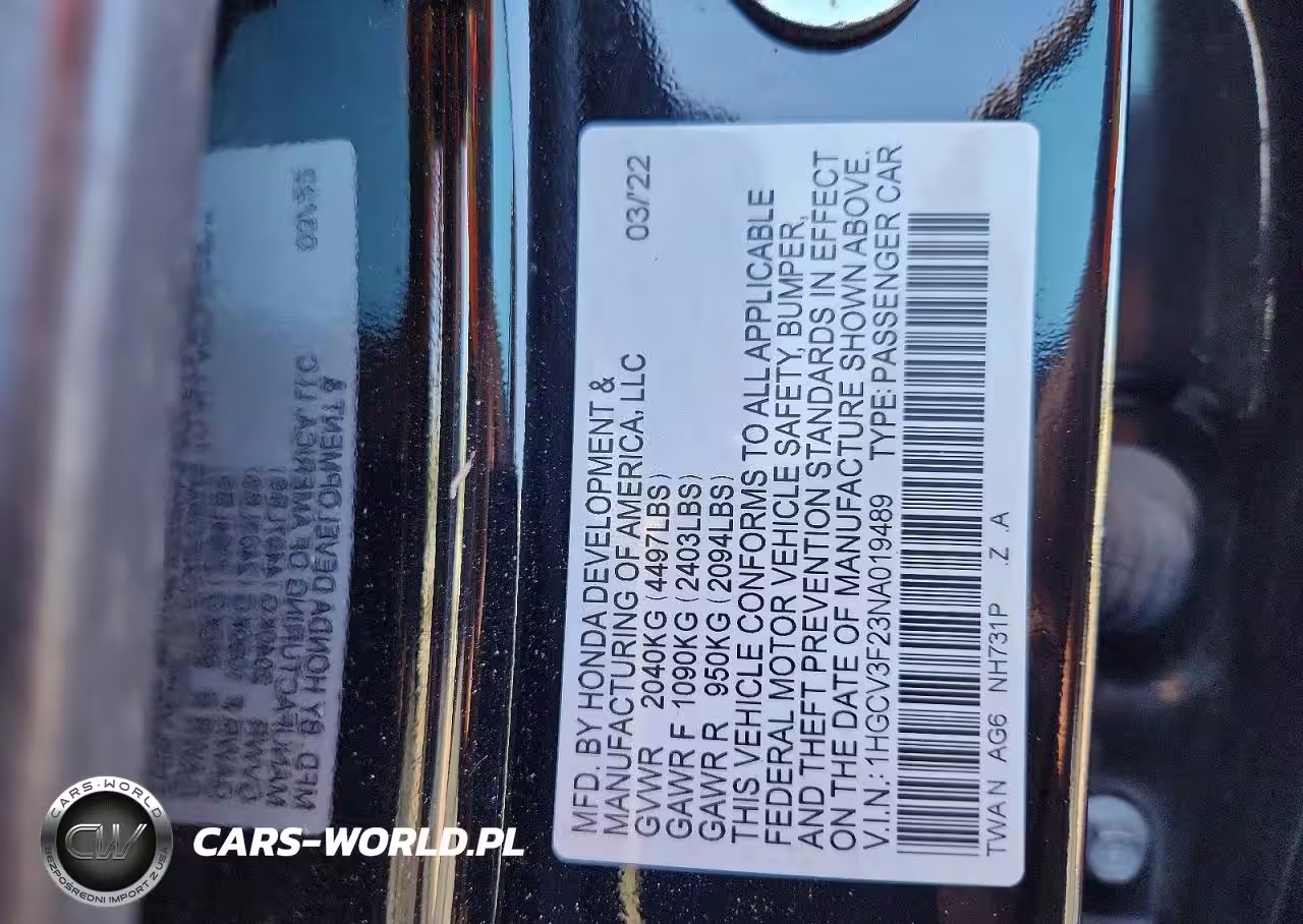 Copart Nr: C-78536285 VIN: 1HGCV3F23NA019489 Port: Los Angeles, CA
