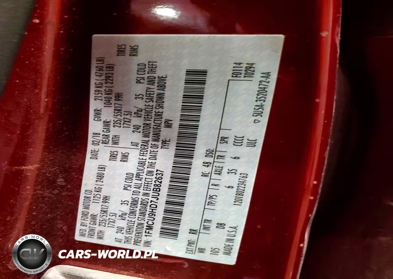 Copart Nr: C-78537215 VIN: 1FMCU9HD7JUB82637 Port: Indianapolis, IN