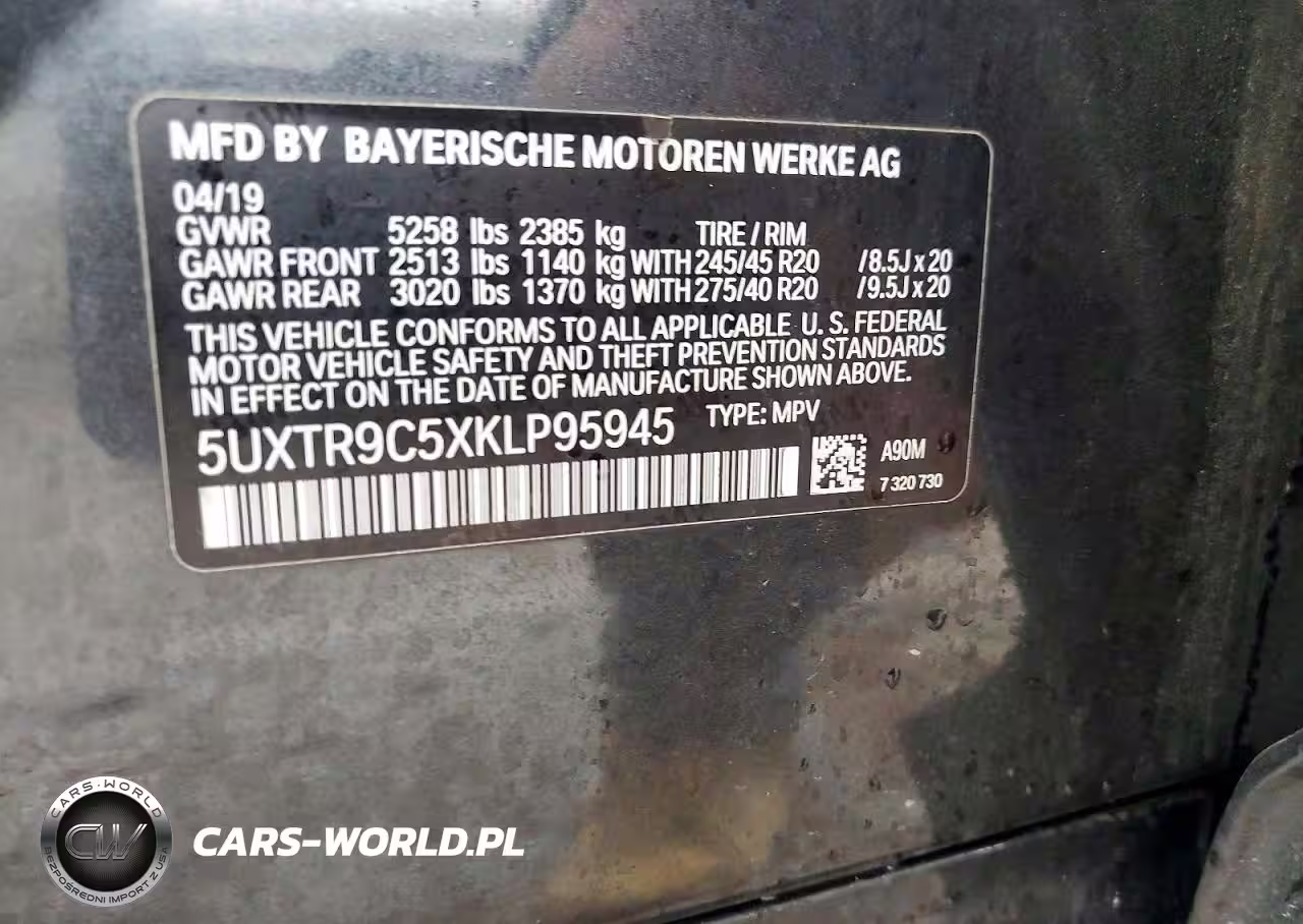 Copart Nr: C-78540325 VIN: 5UXTR9C5XKLP95945 Port: Indianapolis, IN