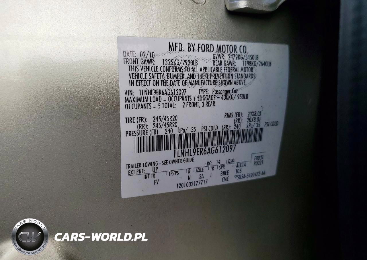 Copart Nr: C-78561135 VIN: 1LNHL9ER6AG612097 Port: Elizabeth, NJ