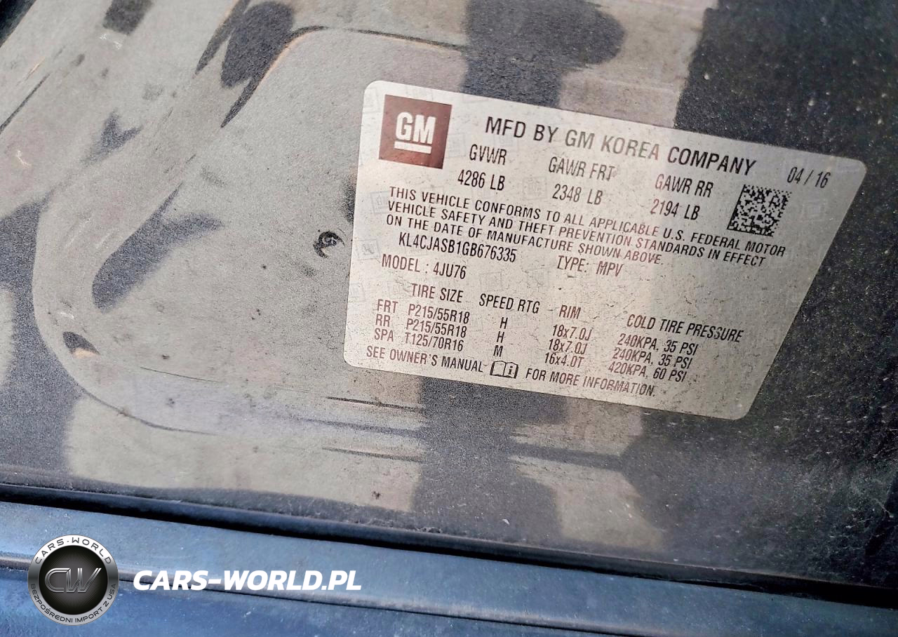 Copart Nr: C-78578835 VIN: KL4CJASB1GB676335 Port: Savannah, GA
