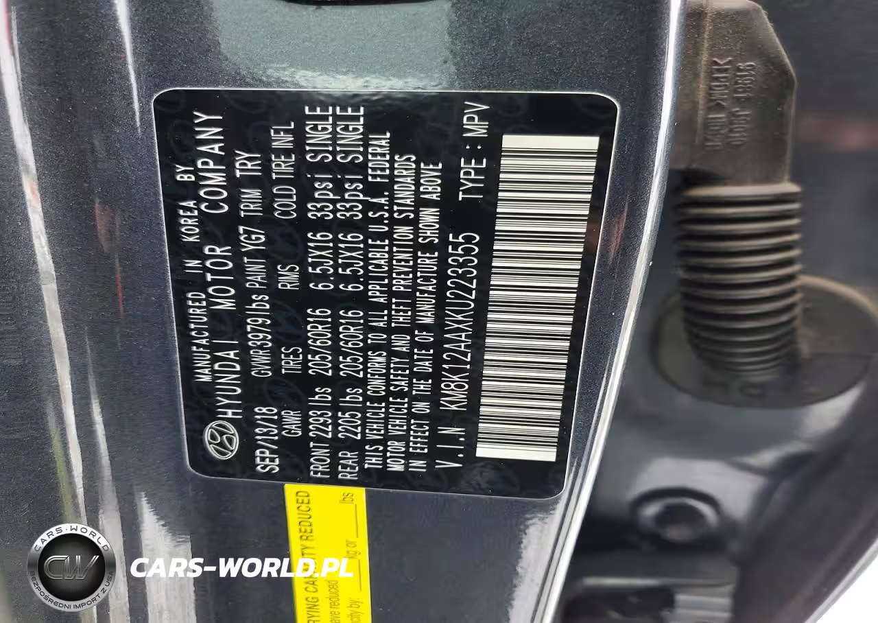 Copart Nr: C-78596515 VIN: KM8K12AAXKU223355 Port: Indianapolis, IN