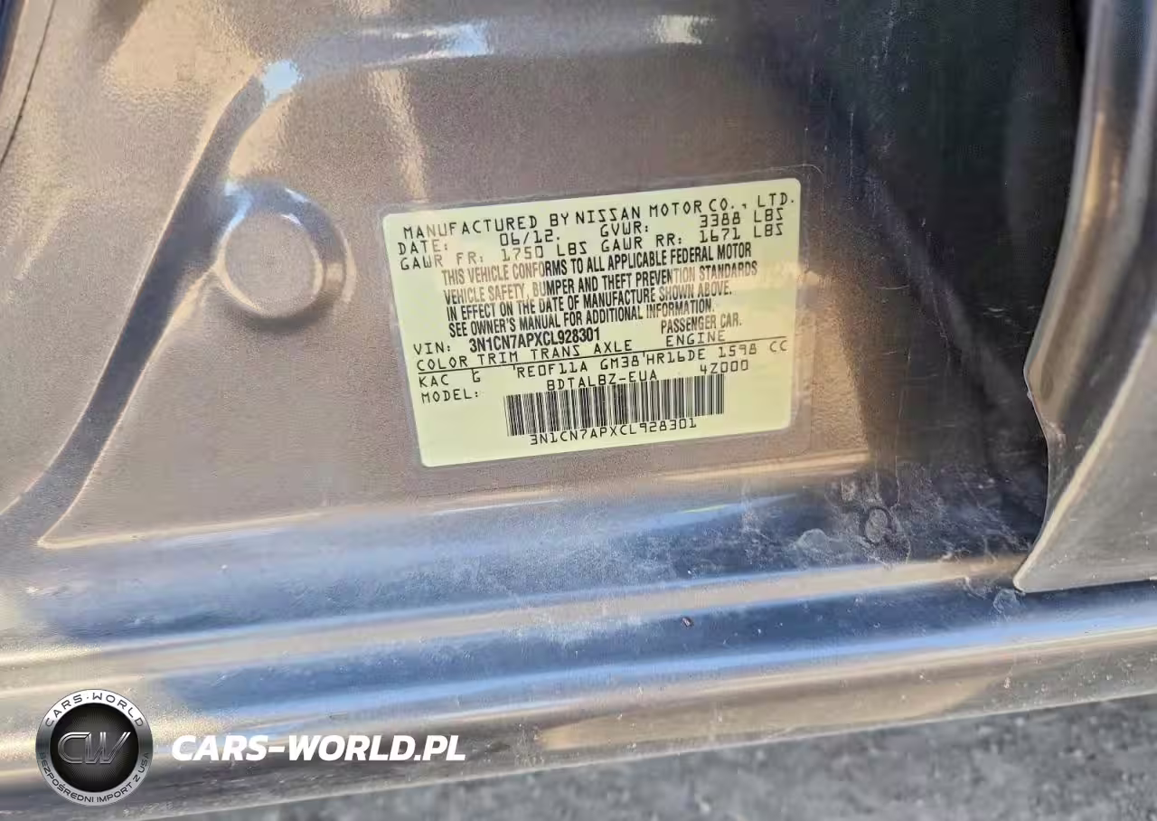 Copart Nr: C-78614035 VIN: 3N1CN7APXCL928301 Port: Houston, TX
