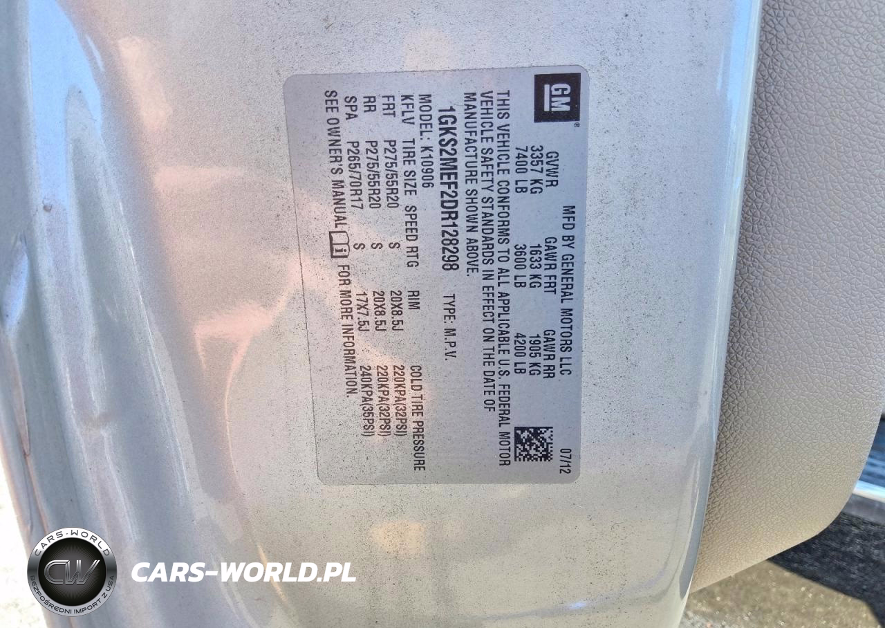 Copart Nr: C-78645935 VIN: 1GKS2MEF2DR128298 Port: Elizabeth, NJ