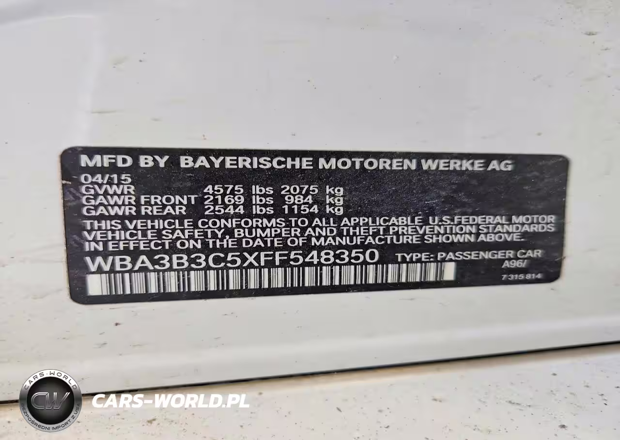 Copart Nr: C-78654045 VIN: WBA3B3C5XFF548350 Port: Indianapolis, IN