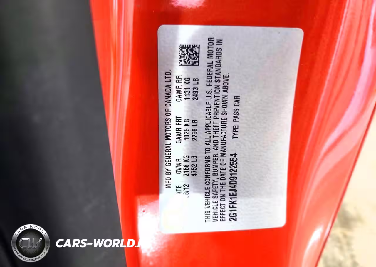 Copart Nr: C-78697565 VIN: 2G1FK1EJ4D9122554 Port: Indianapolis, IN