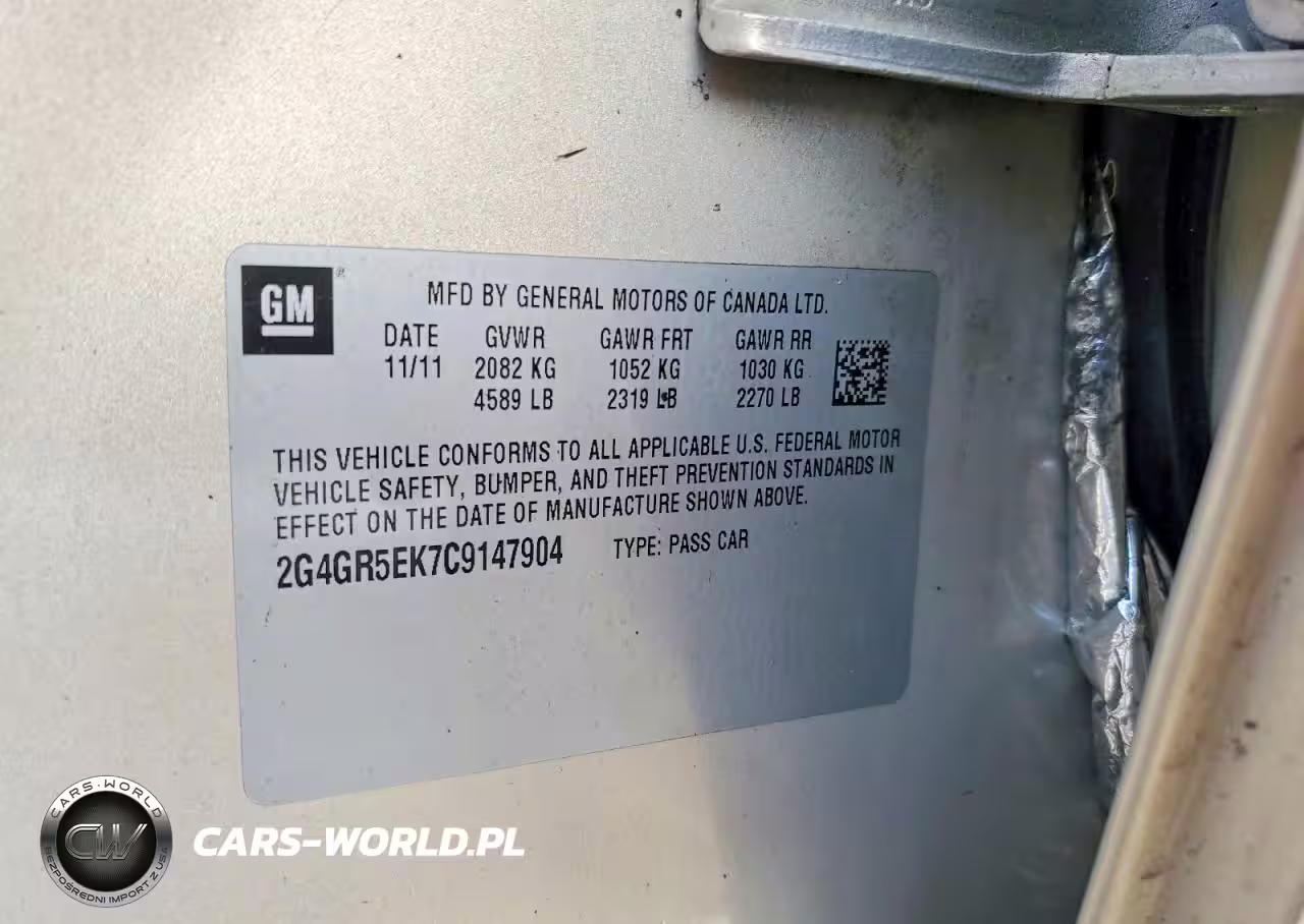 Copart Nr: C-78699925 VIN: 2G4GR5EK7C9147904 Port: Elizabeth, NJ