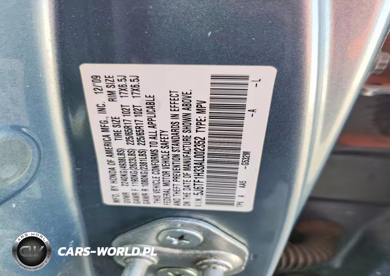 Copart Nr: C-78714955 VIN: 5J6TF1H33AL002352 Port: Indianapolis, IN
