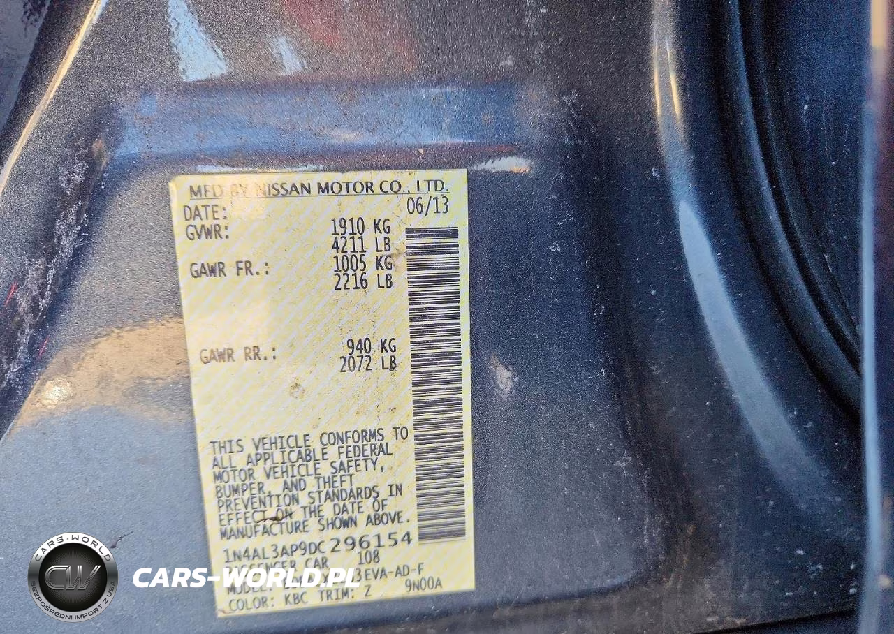 Copart Nr: C-78733045 VIN: 1N4AL3AP9DC296154 Port: Elizabeth, NJ