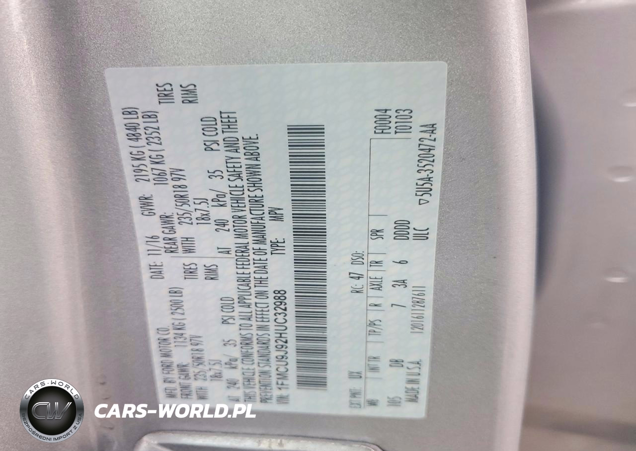 Copart Nr: C-78734355 VIN: 1FMCU9J92HUC32988 Port: Elizabeth, NJ