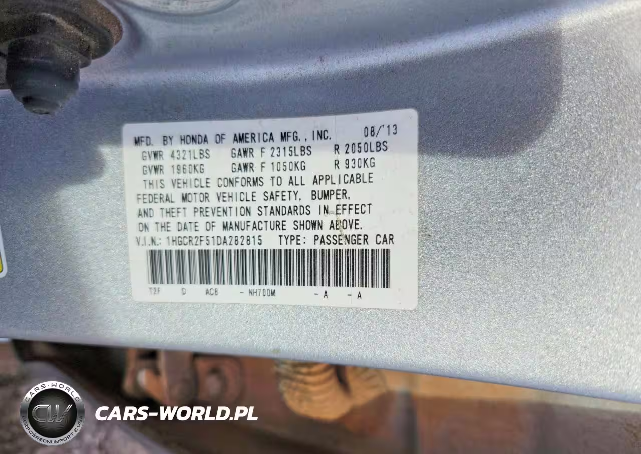 Copart Nr: C-78754835 VIN: 1HGCR2F51DA282815 Port: Savannah, GA