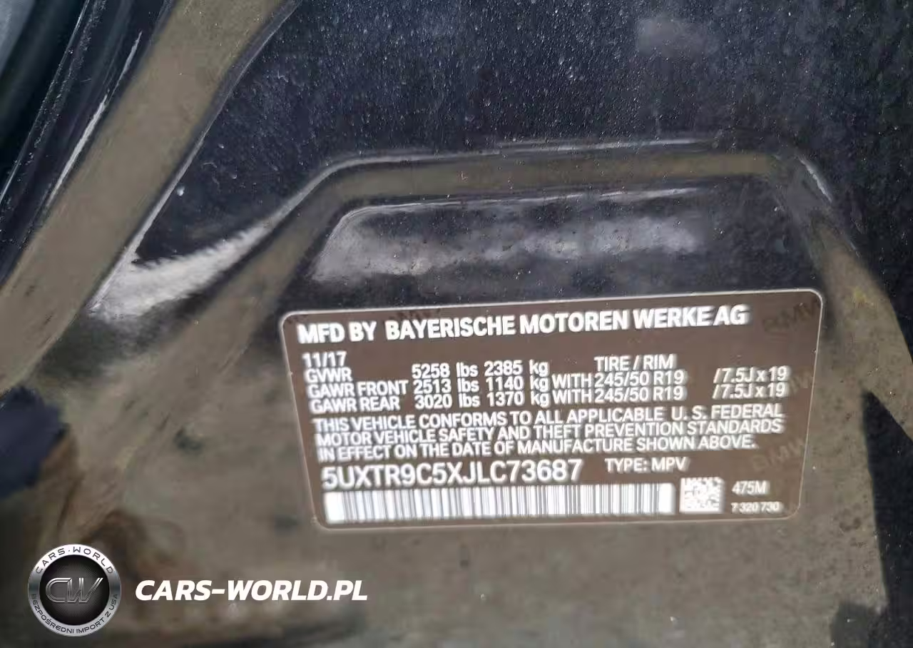 Copart Nr: C-78761755 VIN: 5UXTR9C5XJLC73687 Port: Elizabeth, NJ