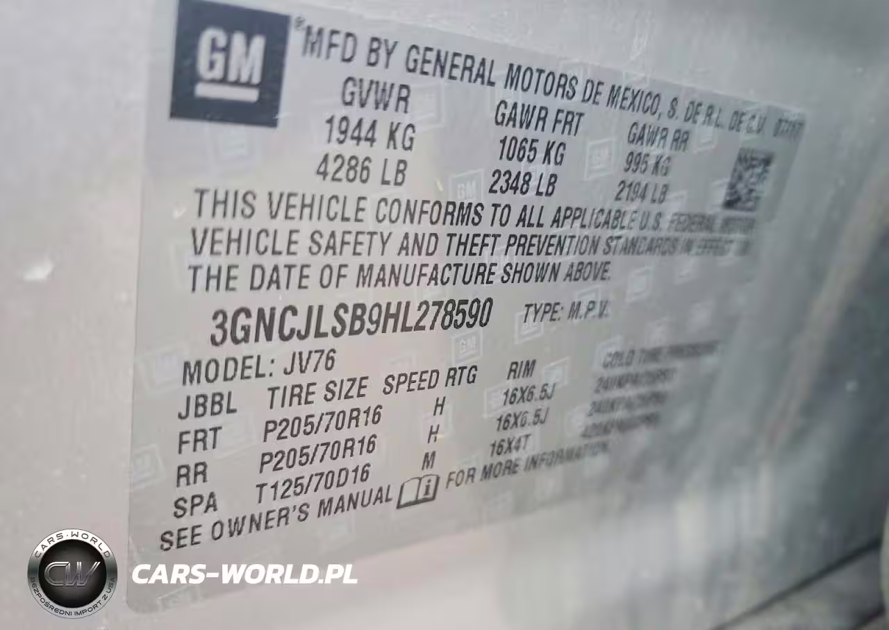 Copart Nr: C-78778565 VIN: 3GNCJLSB9HL278590 Port: Indianapolis, IN