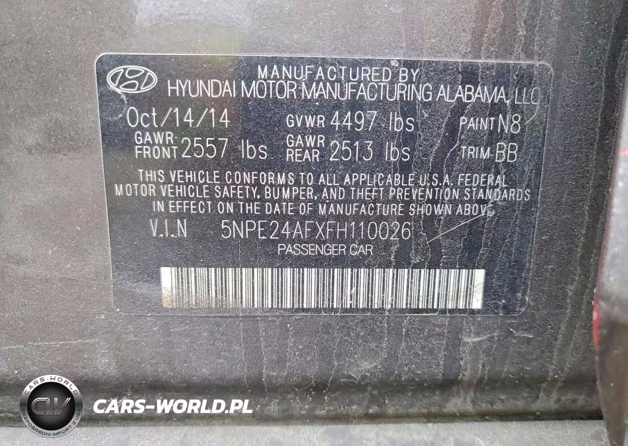 Copart Nr: C-78780665 VIN: 5NPE24AFXFH110026 Port: Elizabeth, NJ