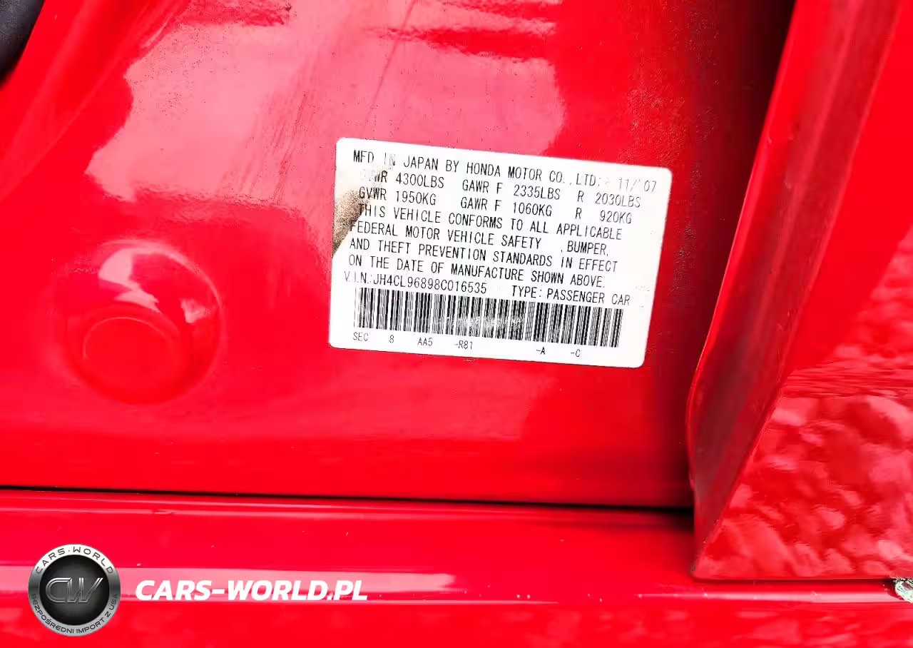 Copart Nr: C-78794035 VIN: JH4CL96898C016535 Port: Savannah, GA