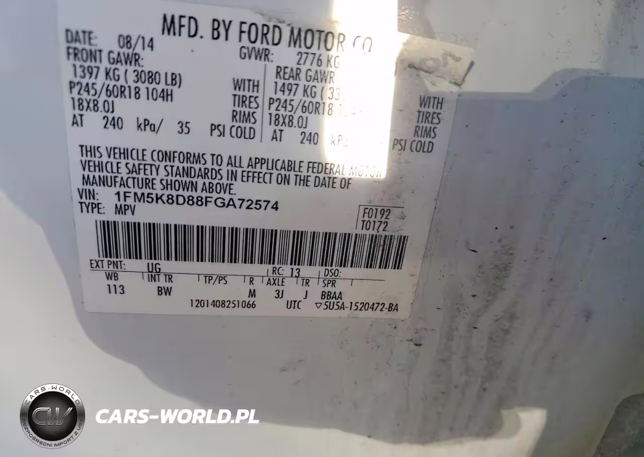 Copart Nr: C-78801945 VIN: 1FM5K8D88FGA72574 Port: Elizabeth, NJ