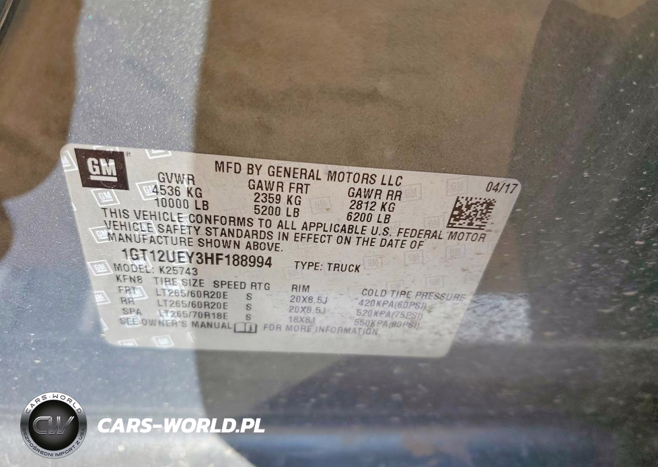 Copart Nr: C-78811085 VIN: 1GT12UEY3HF188994 Port: Houston, TX