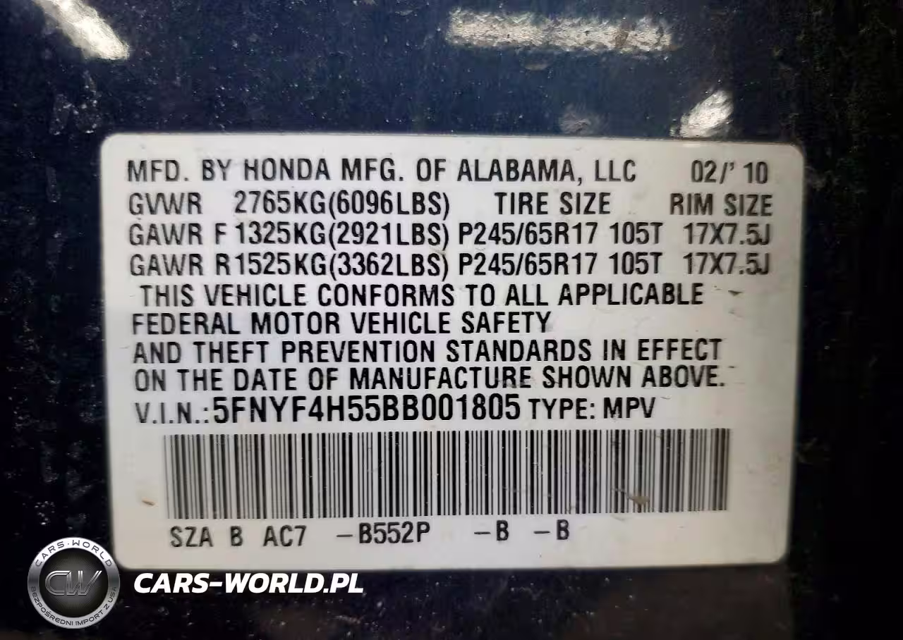 Copart Nr: C-78826415 VIN: 5FNYF4H55BB001805 Port: Indianapolis, IN