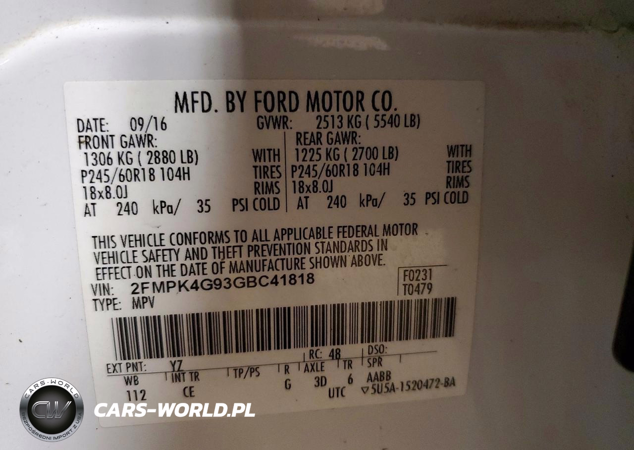 Copart Nr: C-78832245 VIN: 2FMPK4G93GBC41818 Port: Indianapolis, IN