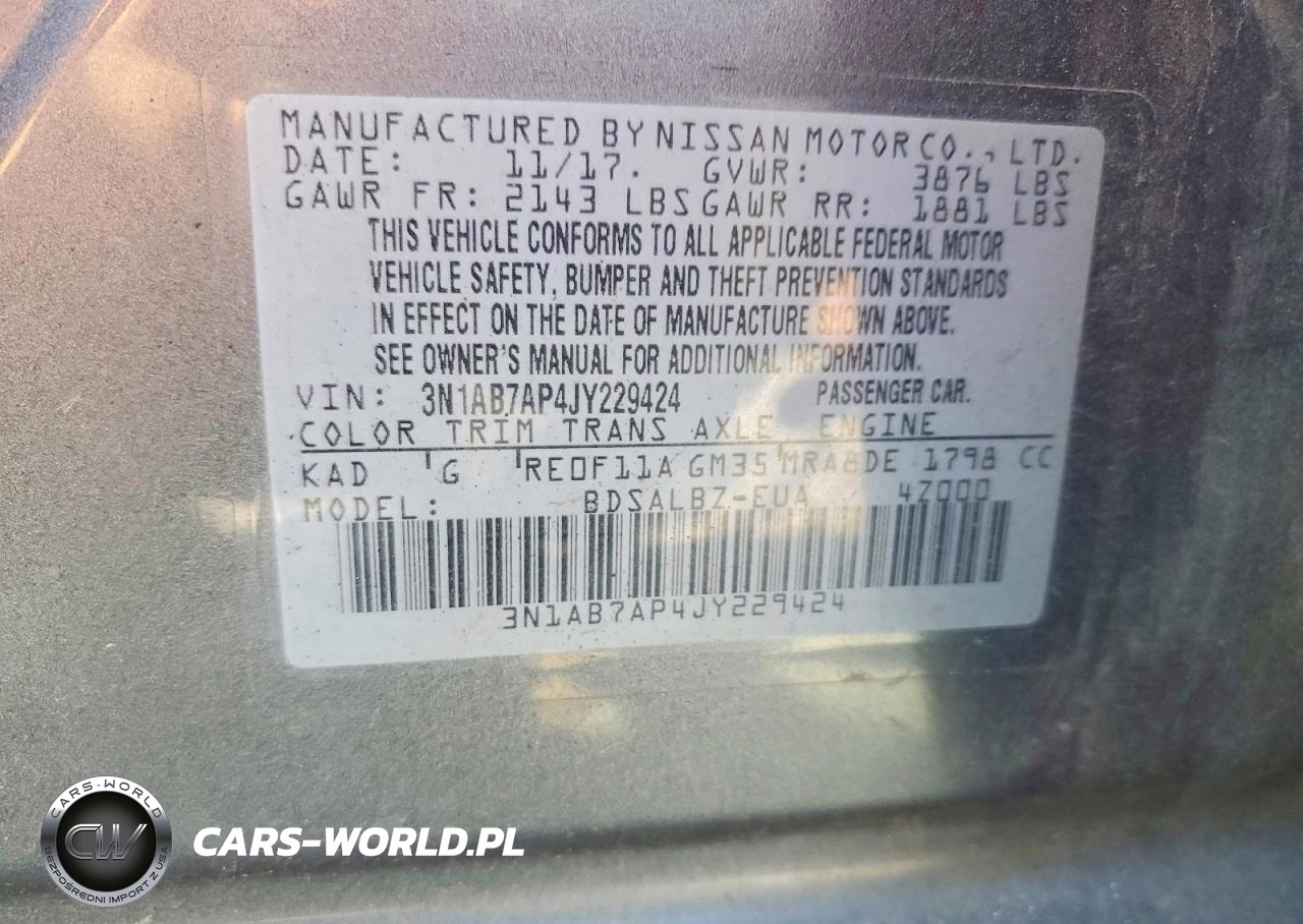 Copart Nr: C-78836375 VIN: 3N1AB7AP4JY229424 Port: Savannah, GA