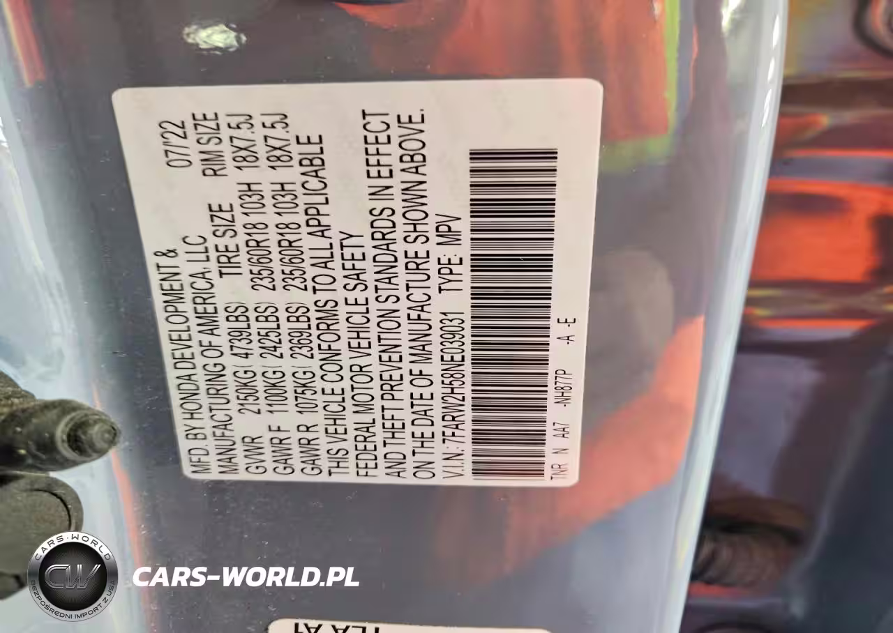 Copart Nr: C-78837855 VIN: 7FARW2H58NE039031 Port: Indianapolis, IN