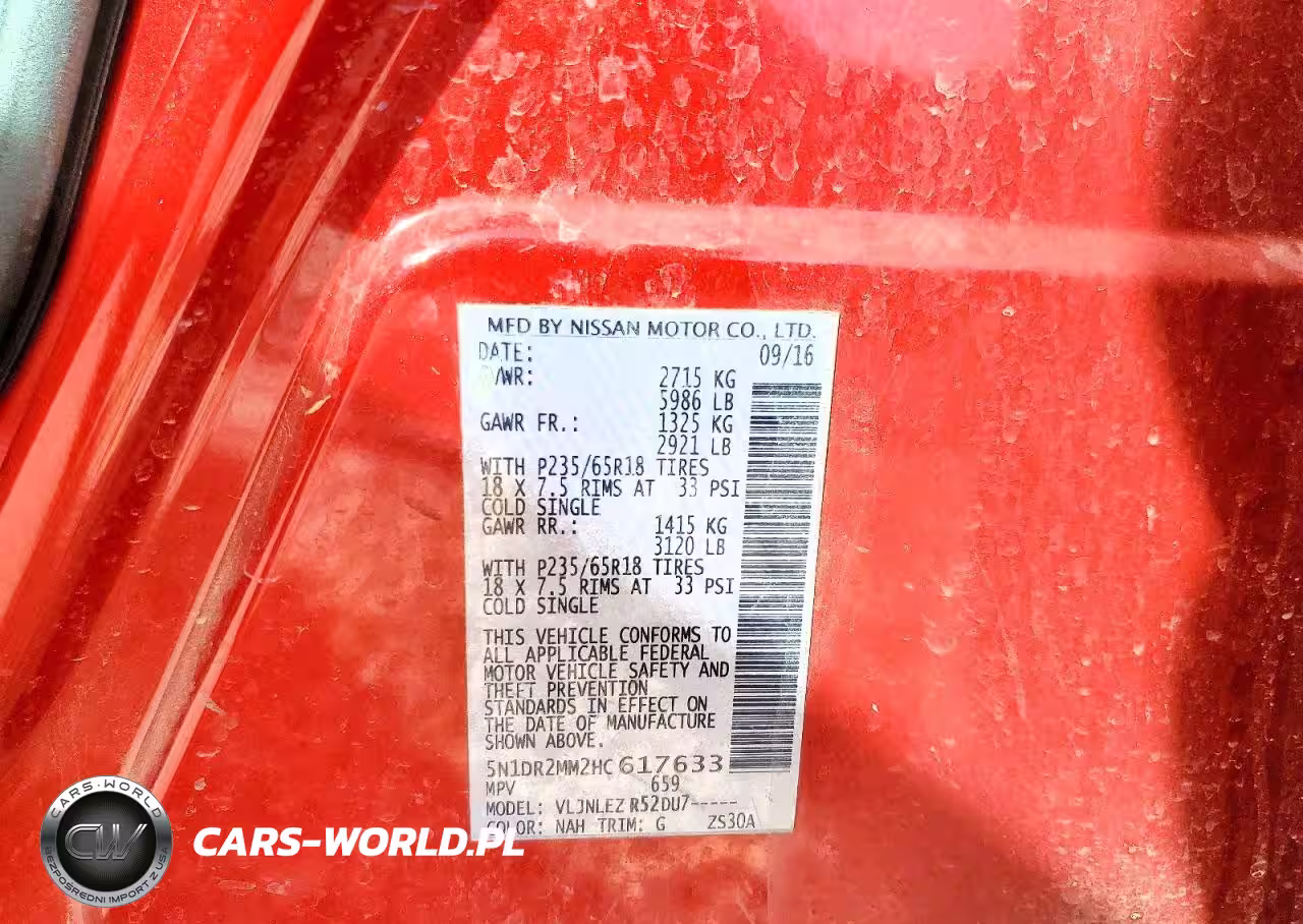 Copart Nr: C-78849525 VIN: 5N1DR2MM2HC617633 Port: Houston, TX