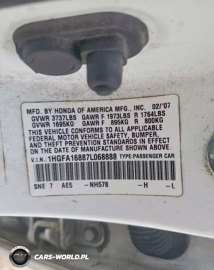 Copart Nr: C-78851965 VIN: 1HGFA16887L068888 Port: Savannah, GA