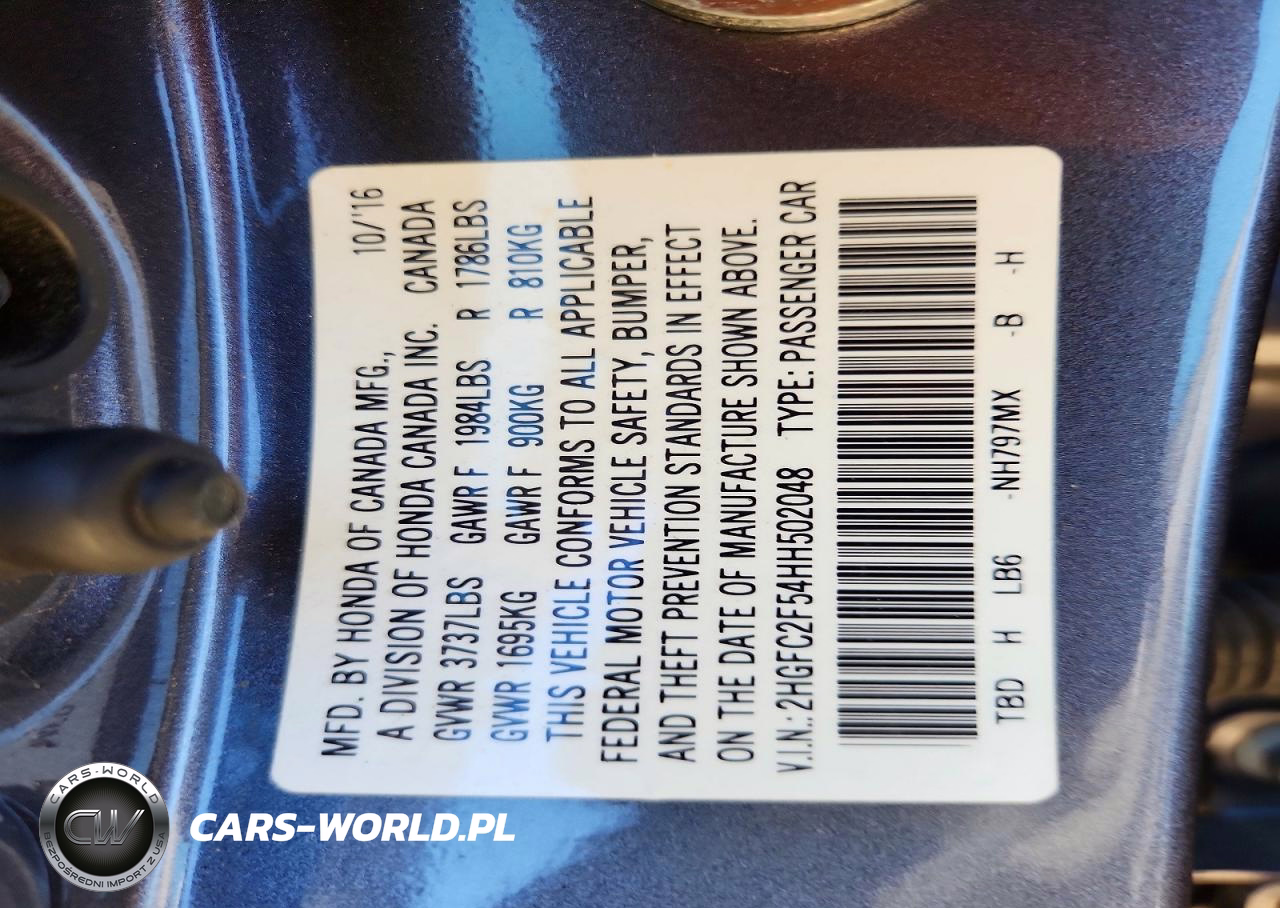Copart Nr: C-78858725 VIN: 2HGFC2F54HH502048 Port: Los Angeles, CA