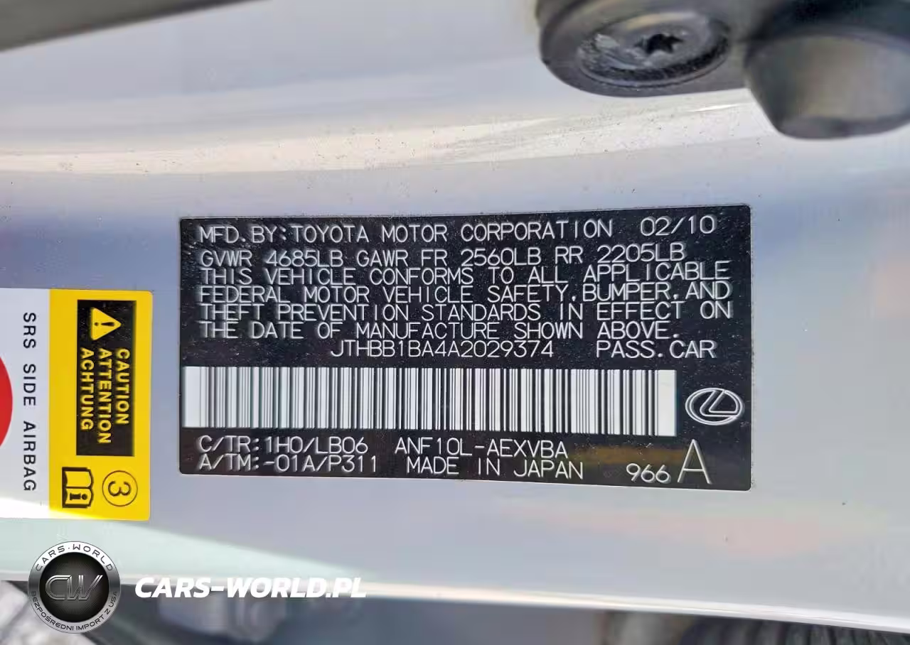 Copart Nr: C-78896125 VIN: JTHBB1BA4A2029374 Port: Houston, TX