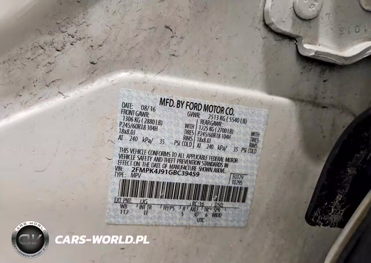 Copart Nr: C-78916815 VIN: 2FMPK4J91GBC39459 Port: Elizabeth, NJ