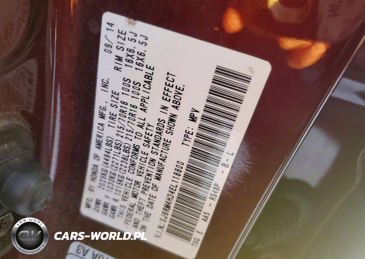 Copart Nr: C-78964675 VIN: 5J6RM4H34EL118800 Port: Indianapolis, IN