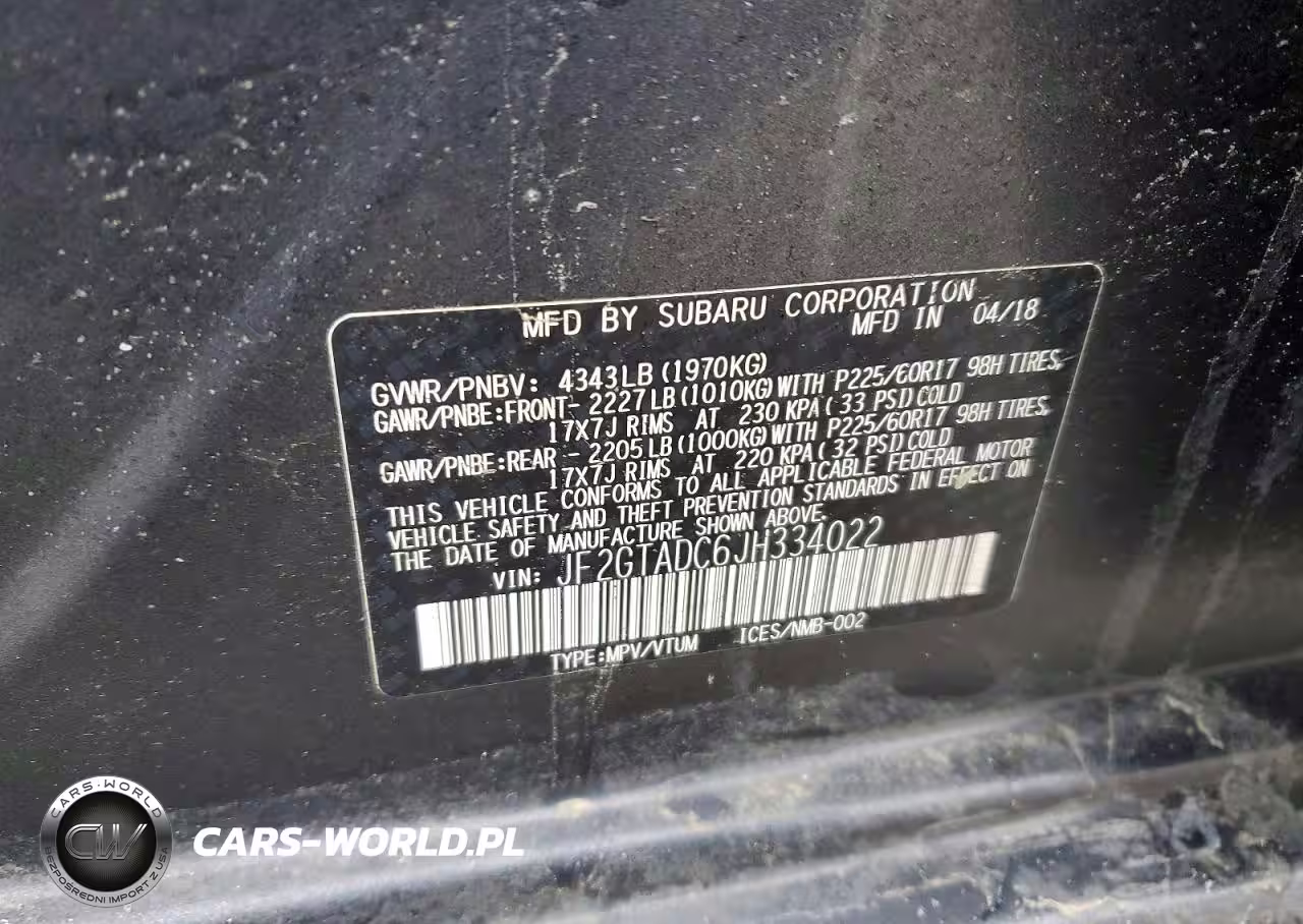 Copart Nr: C-78964795 VIN: JF2GTADC6JH334022 Port: Elizabeth, NJ