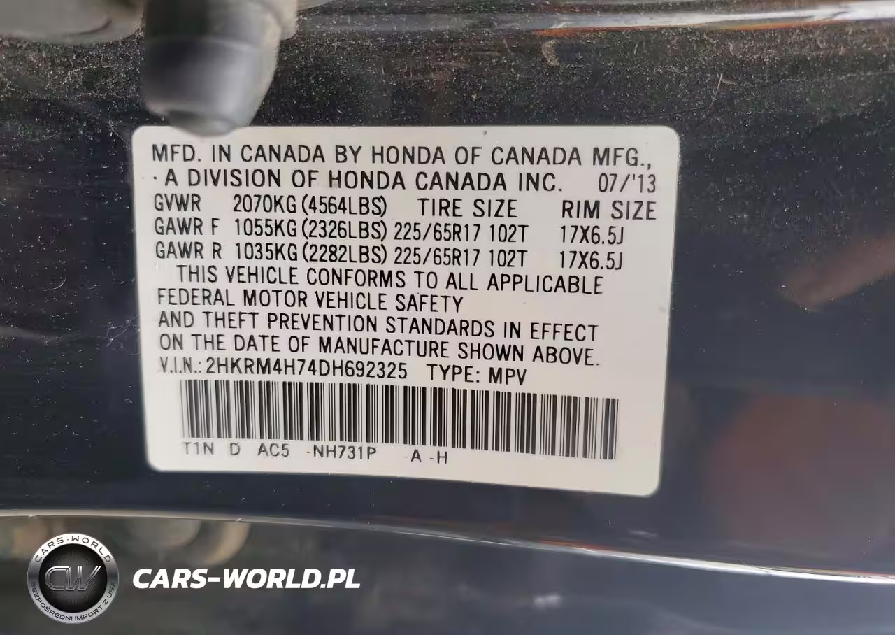 Copart Nr: C-78971525 VIN: 2HKRM4H74DH692325 Port: Los Angeles, CA