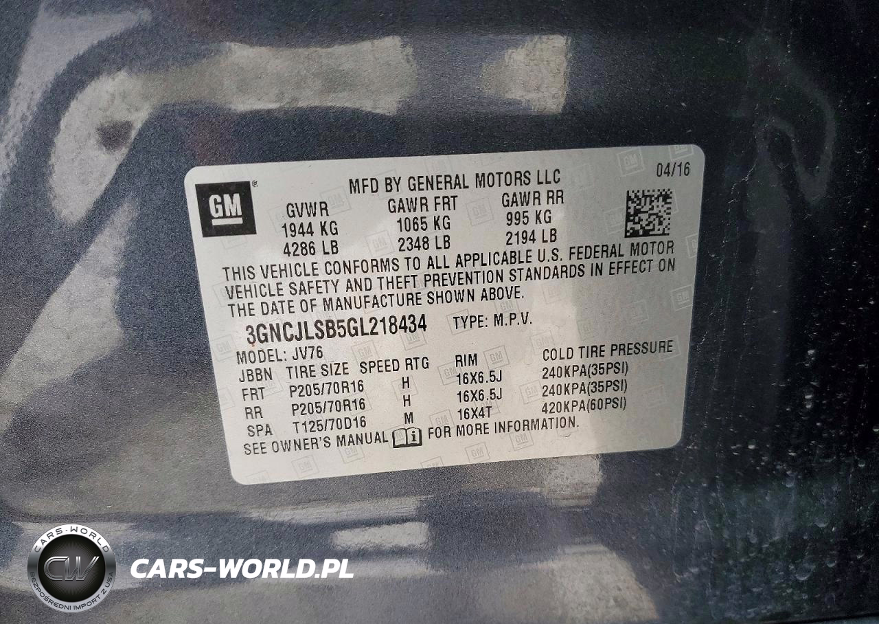 Copart Nr: C-78985705 VIN: 3GNCJLSB5GL218434 Port: Houston, TX