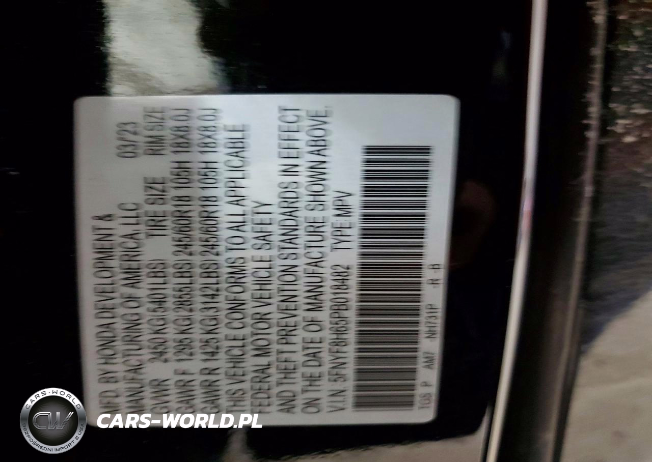 Copart Nr: C-78991105 VIN: 5FNYF8H65PB018482 Port: Elizabeth, NJ