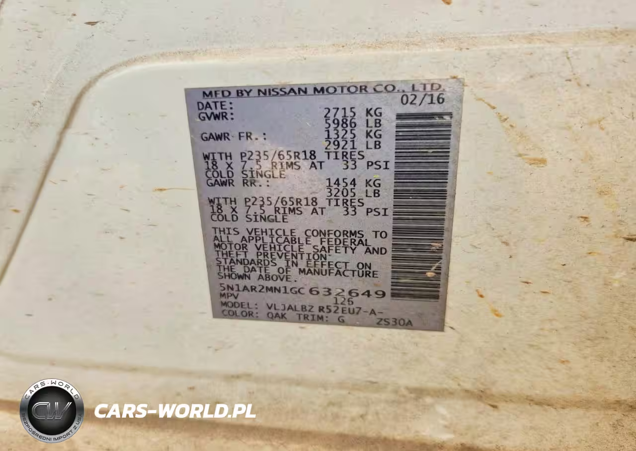 Copart Nr: C-79052165 VIN: 5N1AR2MN1GC632649 Port: Savannah, GA