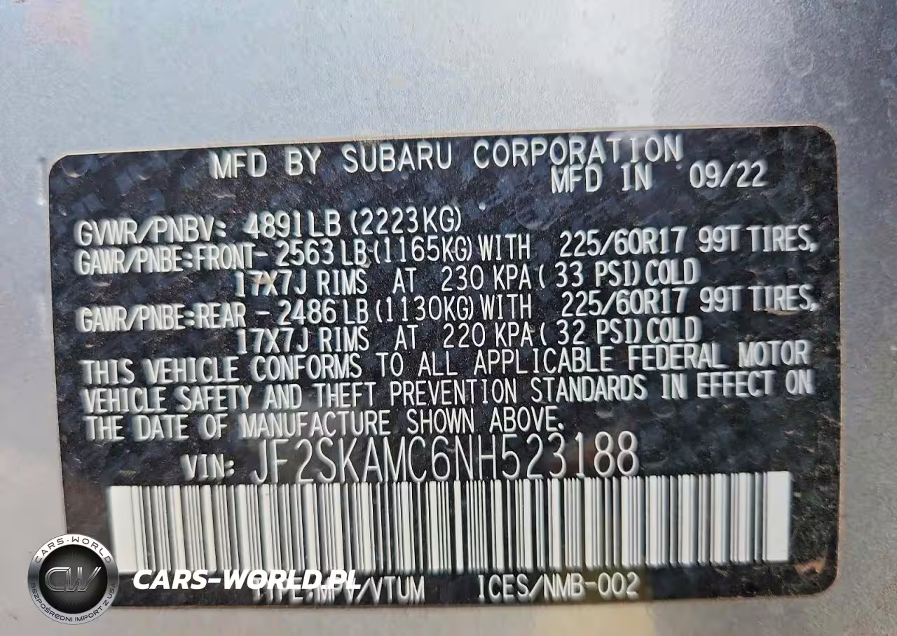 Copart Nr: C-79053535 VIN: JF2SKAMC6NH523188 Port: Indianapolis, IN