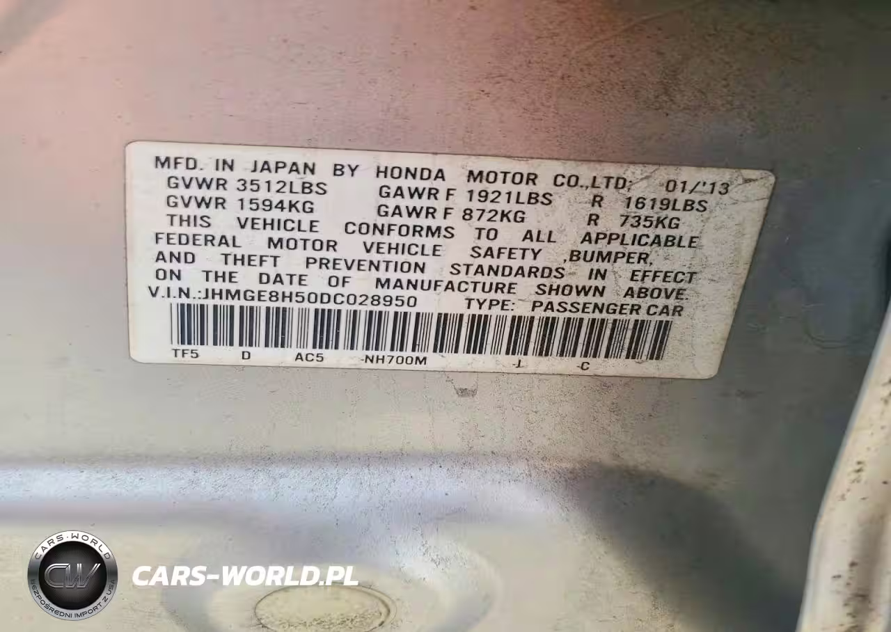 Copart Nr: C-79056725 VIN: JHMGE8H50DC028950 Port: Indianapolis, IN