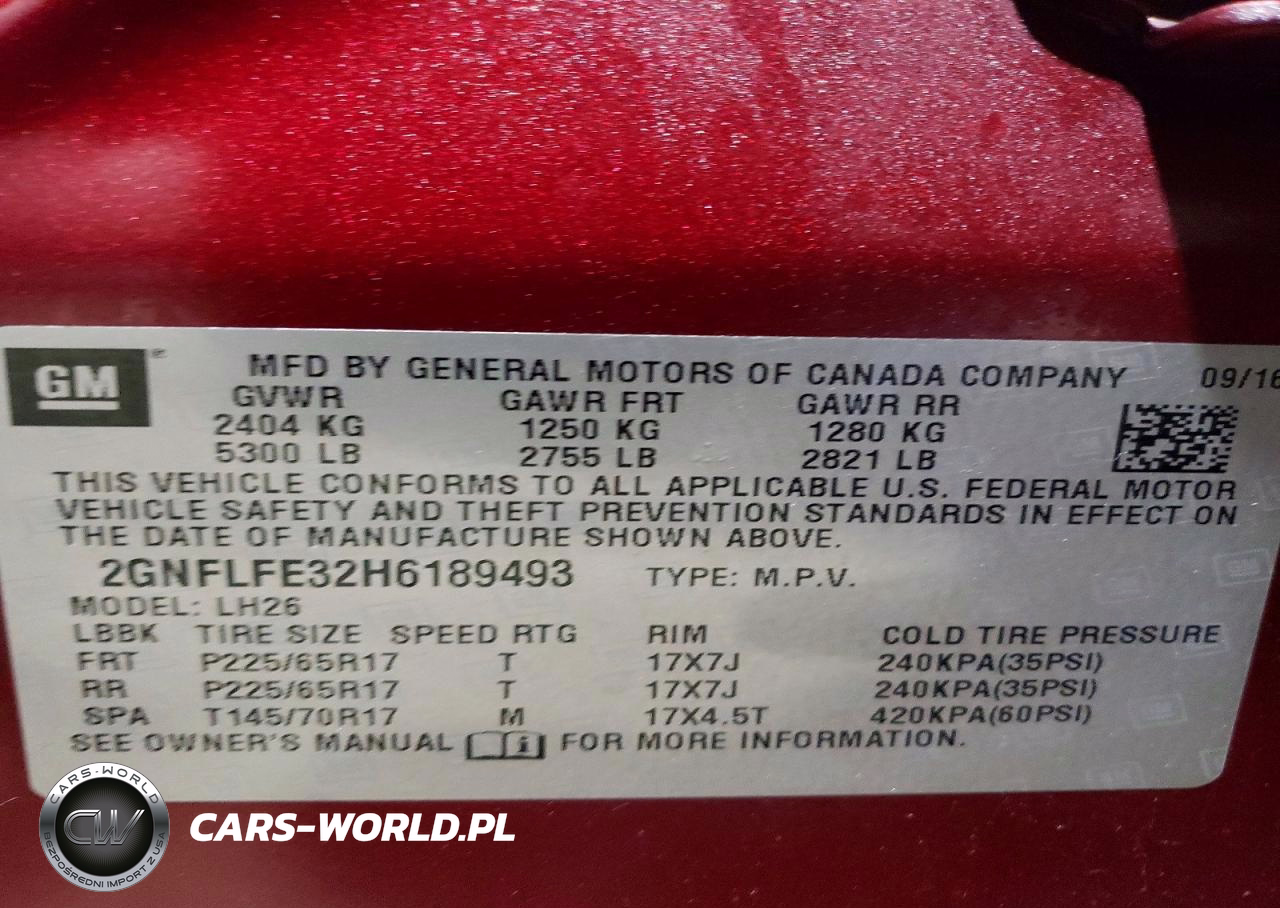 Copart Nr: C-79056915 VIN: 2GNFLFE32H6189493 Port: Elizabeth, NJ