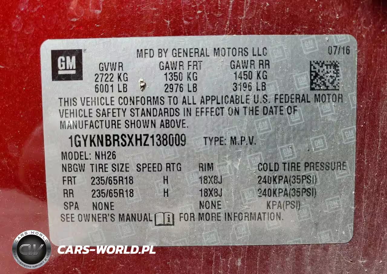 Copart Nr: C-79060605 VIN: 1GYKNBRSXHZ138009 Port: Savannah, GA